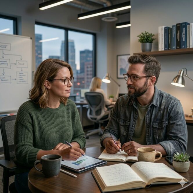 Our goal is to help you build systems you can maintain on your own—so your progress lasts long after coaching ends. Many clients also pair workplace systems with ADHD-informed life coaching to support routines, habits, and work-life balance.